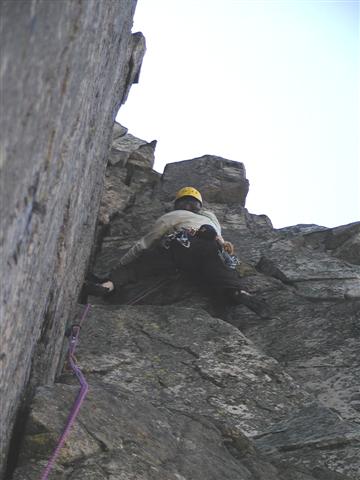 Wspinaczka w Śnieżnych Kotłach, droga: Wielkie Zacięcie VI na zach. ścianie Zęba Rekina